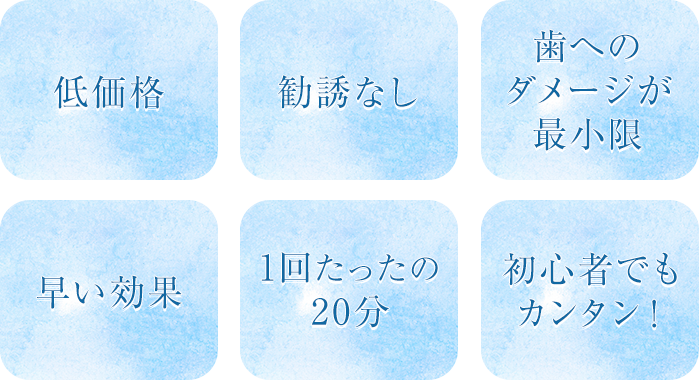 当店は常に最先端の薬剤を導入し、更にホワイトニング効果の最も高いものを厳選して使用しております。
